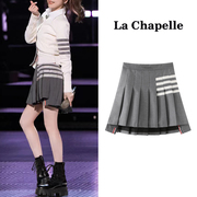 拉夏贝尔/La Chapelle半身裙短裙女高腰显瘦王心凌同款tb百褶裙夏