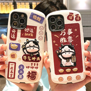 新年适用iPhone12苹果11promax手机壳XS刺绣XR奶牛8PLUSSE7软mini