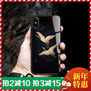 苹果6/iphone7/8plus/XSmax/XR/iphoneX手机壳仙鹤国风唯美手机壳