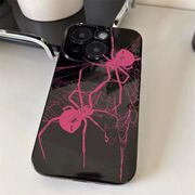 暗粉蜘蛛适用苹果6/7/8plus直边手机保护壳iPhone11/12/13/14/15promax光面黑xsmax防摔个性xr保护套15plus暗黑风