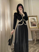 sandro monsl名媛显瘦长裙女法式秋冬小香风轻熟收腰假两件连衣裙