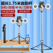 手机自拍杆加长1.7米带美颜补光灯通用铝合金直播支架落地三脚架蓝牙遥控拍照杆一体式伸缩折叠适用华为苹果