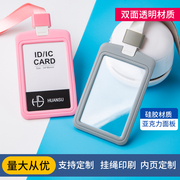 硅胶双面款卡套带挂绳证件套上岗证公交门禁卡交通卡保护套胸牌学生校园卡卡套校牌挂脖工作牌胸牌挂套定制