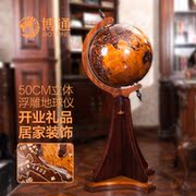 50CM立体实木浮雕地球仪宾馆酒店客厅大堂落地摆件家居风水工艺品