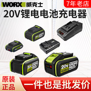 worx威克士原装20V锂电电池通用4.0 大脚板WA3016 电动工具充电器