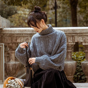 10 慵懒风灰色短款高领毛衣女秋冬2023新款休闲宽松港味复古chic上衣 44.80 详情