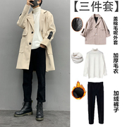 5 港风秋冬季三件套男装休闲套装韩版毛呢外套冬天帅气一套衣服裤子 48.00 详情