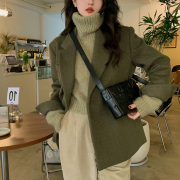 amii sandro2022年春秋季绿色双面呢西装外套女短款高端毛呢大衣