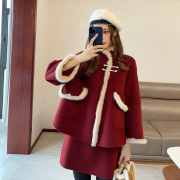 amii sandro2022年春季小香风套装女圣诞红色毛呢外套a字裙两件套