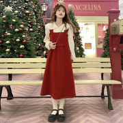amii sandro2022年圣诞红色毛衣女法式金丝绒半身裙新年毛衣套装