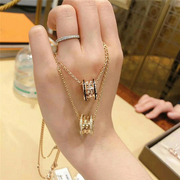 Bvlgari/宝格丽新款Rock 18K玫瑰金镶钻铆钉弹簧锁骨链吊坠项链女