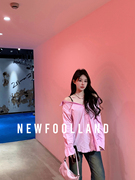 【FOOLLAND】大W23新款时装设计吊带牛津纺粉色条纹露肩衬衫女