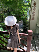ski by Tannin 灰色褶皱衬衫裙泡泡袖v领连衣裙女夏季短款裙子