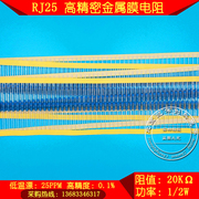 RJ25高精密金属膜电阻器1/2W 20K 0.1%0.5W低温漂25ppm千分之一