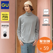 GU极优男装柔软棉质两翻领T恤22年冬舒适高领内搭打底长袖343363