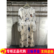 欧时力丹妮正品2019新女春装V领印花百褶长袖连衣裙1ZY1080470