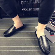 夏季男鞋韩版亮面夜店潮拖无后跟豆豆鞋懒人包头半拖鞋发型师皮鞋