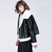 朱丹同款大翻领羊羔绒短外套皮毛一体夹克皮衣机车服MA174FUR005