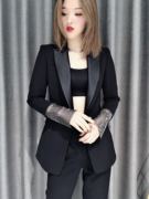 爱依伦AIYILUN 西装外套女春装新款时尚袖口烫钻修身小西服 20275