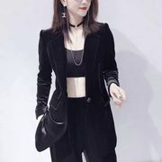 爱依伦AIYILUN秋季新款丝绒小西装外套韩版女修身西服金丝绒21807