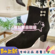 专柜正品卡迪娜女鞋2019秋冬羊反绒金属扣饰加绒中跟短靴KA91568