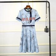 2020春夏新款印花连衣裙V领系腰带修身显瘦A字裙中长款SFOWA2311Q