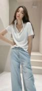 2021新款UA女装U-1627牛仔裤阔腿长裤拖地裤直筒包胯休闲宽松卷边