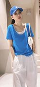 UA女装2021新款U-01688小衫T恤假两件百搭休闲短袖纯棉上衣通勤色