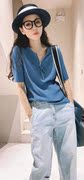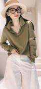 新款棉质翻领鸡心领袖子破洞休闲小衫春打底薄卫衣衬T恤女