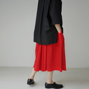 现货Loose Long Skirt SOMEPIECE定染三色后褶皱松紧腰半裙藍黑紅