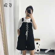 肉完少女心四溢休闲黑色背带裤短裤女春2018新款