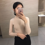 2017秋冬新款简约纯色半高领长袖上衣打底衫韩版修身套头针织衫女