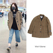 代购we11done19新款千鸟格羊毛西装棕色格纹外套男女娜扎明星同款