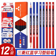 日本三菱铅笔uni原装进口六角笔杆红蓝铅笔772学习套装双色双头标记标图绘图写字铅笔小学生用朱蓝赤铅笔漫画