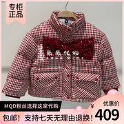 222431305马骑顿MQD专柜冬季女童大童蝴蝶结千鸟格羽绒服-999