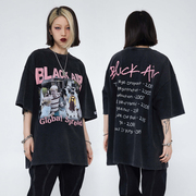 BLACKAIR原创短袖T恤男女潮牌美式水洗做旧vibe街头宽松情侣上衣