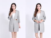 伊百丽E15C060 专柜正品 2015秋新款女装休闲中长款亚麻上衣外套