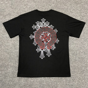正品潮牌chrome hearts克罗心马蹄梵文贴皮十字架男女休闲短袖T恤