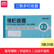 得力办公3499三联无碳复写纸20组多栏收据财务专用收款收据单批发