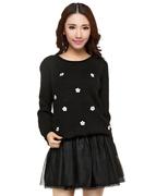 艾格伊品专柜正品女装可爱少女花朵圆领长袖柔软毛衣 170217285
