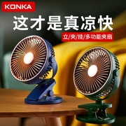 康佳小风扇桌面学生宿舍小型迷你可充电型usb夹式电风扇静音办公室桌上大风力婴儿车夏天床上用摇头电扇
