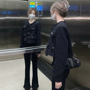 sandro bassa秋季2022年新款法式高级感粗花呢小香风黑色短外套女