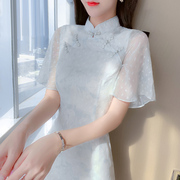 sandro bassa改良版旗袍连衣裙女夏2022新款年轻款开衩收腰雪纺裙
