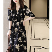 sandro bassa法式碎花连衣裙女夏季2022新款松紧腰长裙子五分袖