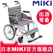 日本MIKI三贵轮椅 老年人超轻便折叠航太铝合金手推代步车免充气