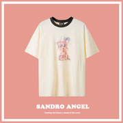 潮牌明星同款well音符彩纱短袖T恤宽松印花圆领上衣夏装卡通潮ins