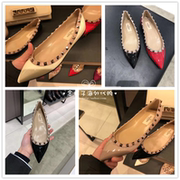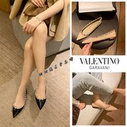 正品代购valentino/华伦天奴平底鞋尖头漆皮铆钉鞋芭蕾舞鞋女鞋