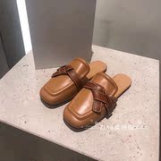 LOEWE/罗意威 20新款拼色打结皮革方头平底一脚蹬凉鞋拖鞋女鞋
