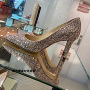 代购Jimmy Choo/周仰杰JC高跟鞋女 七彩渐变亮片尖头婚鞋水晶女鞋