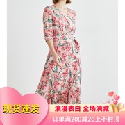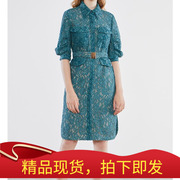 奥丽嘉朵2020夏季新款印花V领不对称系带七分袖连衣裙 1C60305580